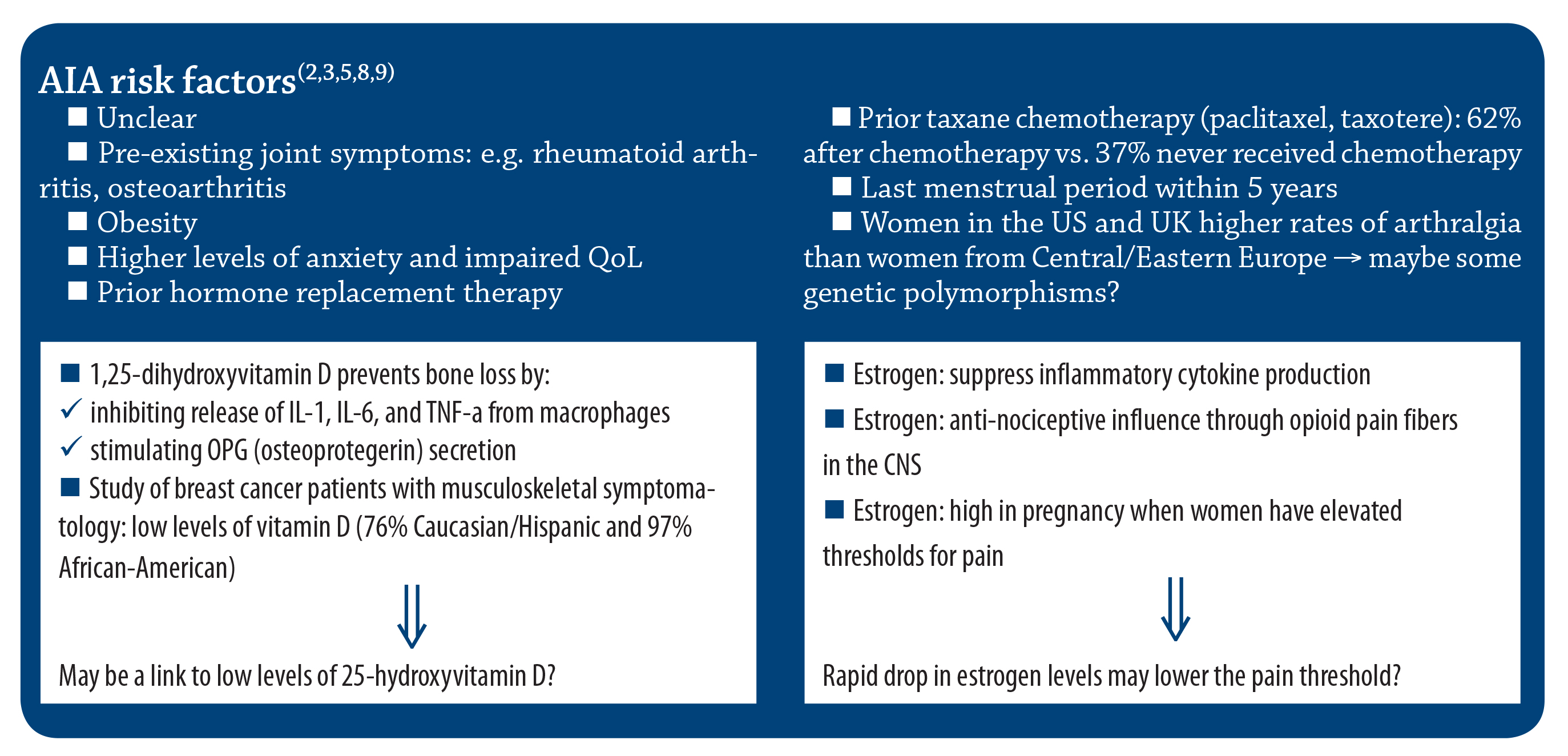 Aromatase Inhibitors Arthralgia (AIA)(1,2,5) Major criteria: